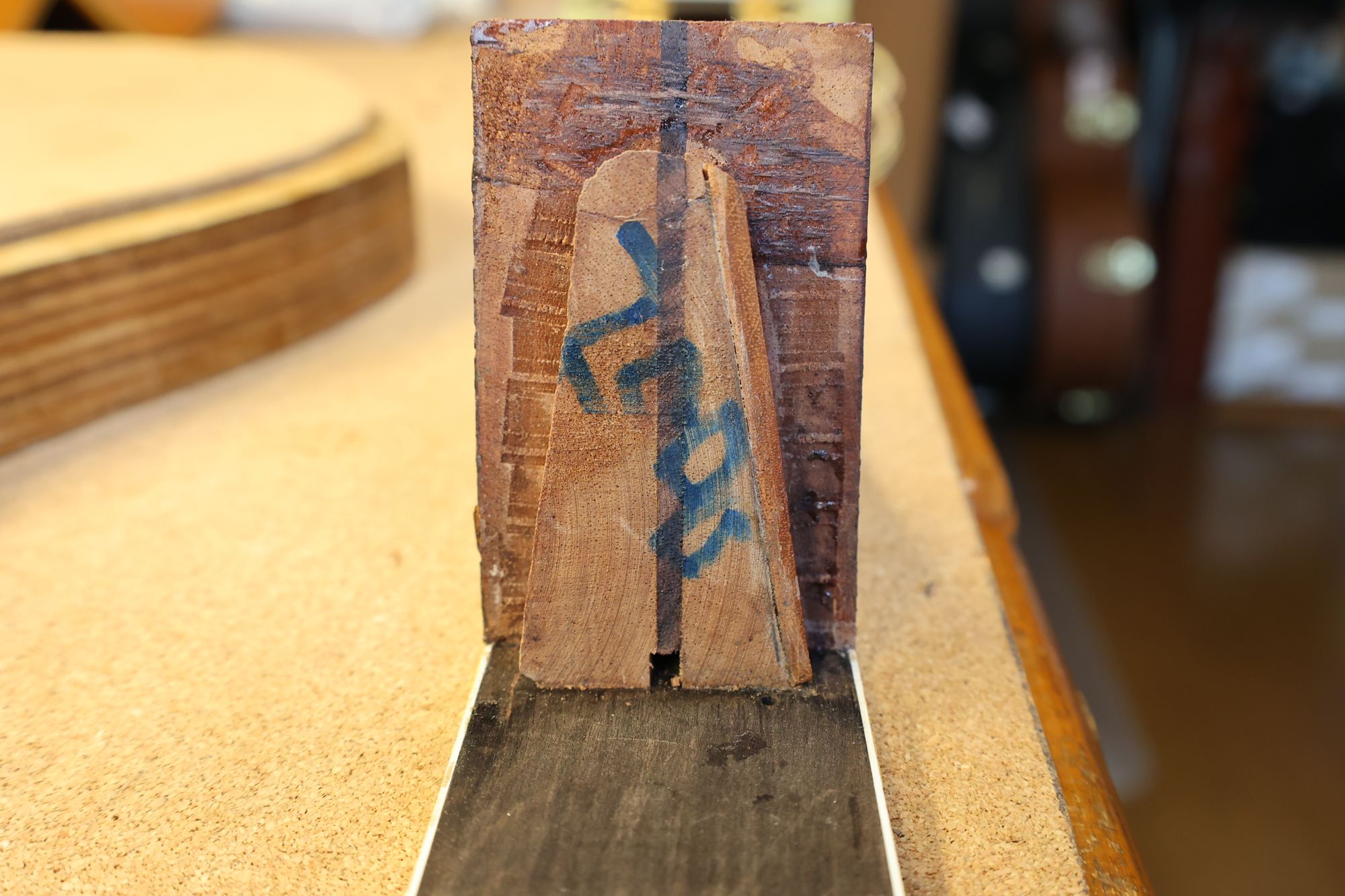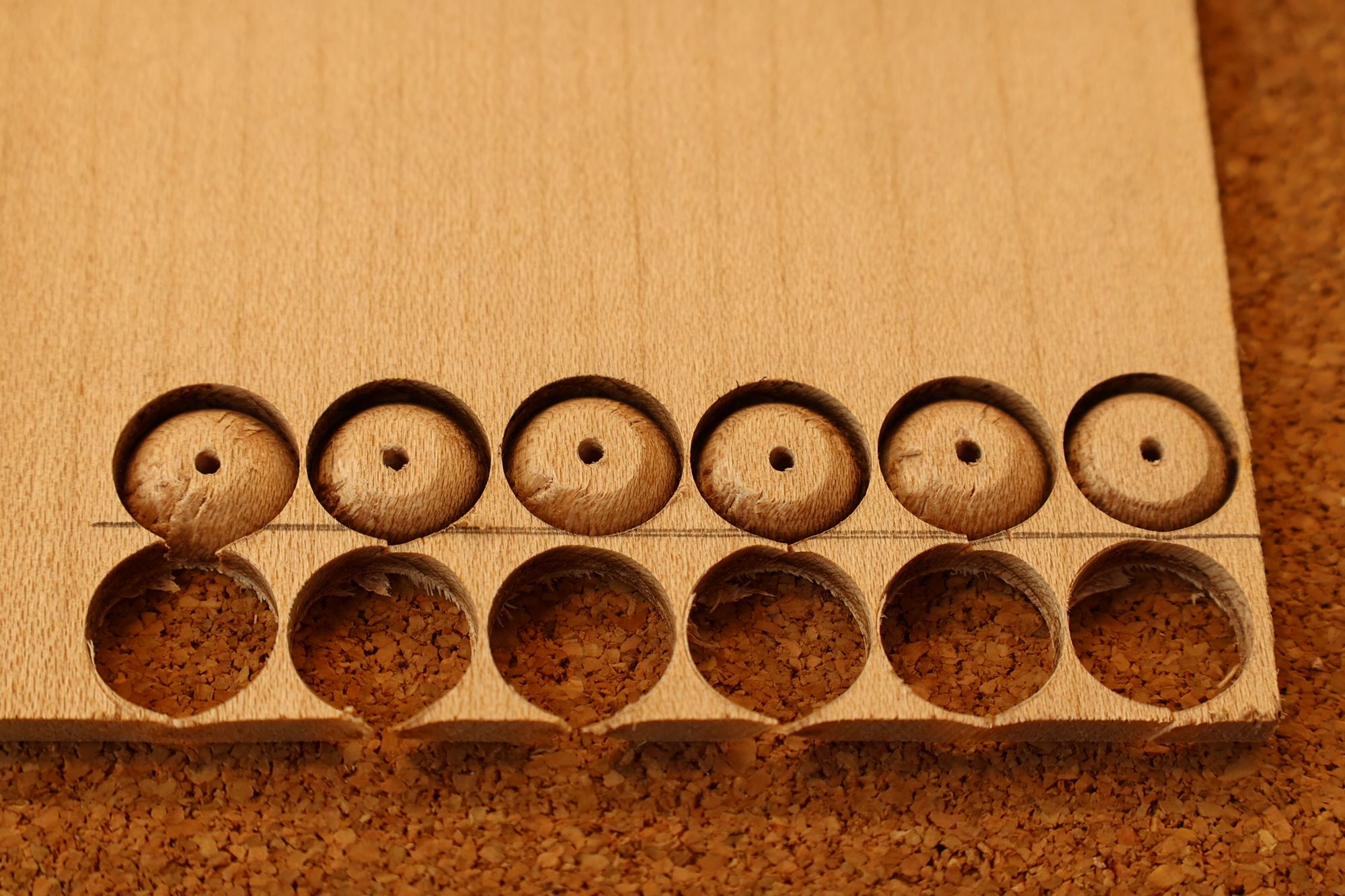 - 2.メイプル材からブリッジプレート・リペアのためのプラグを切り出します。