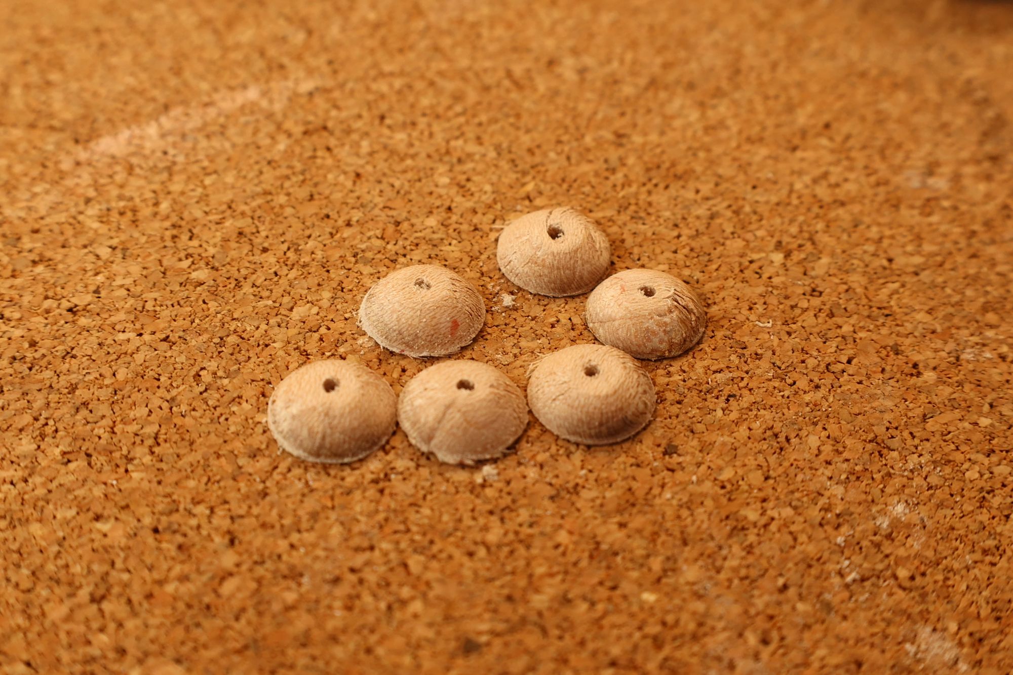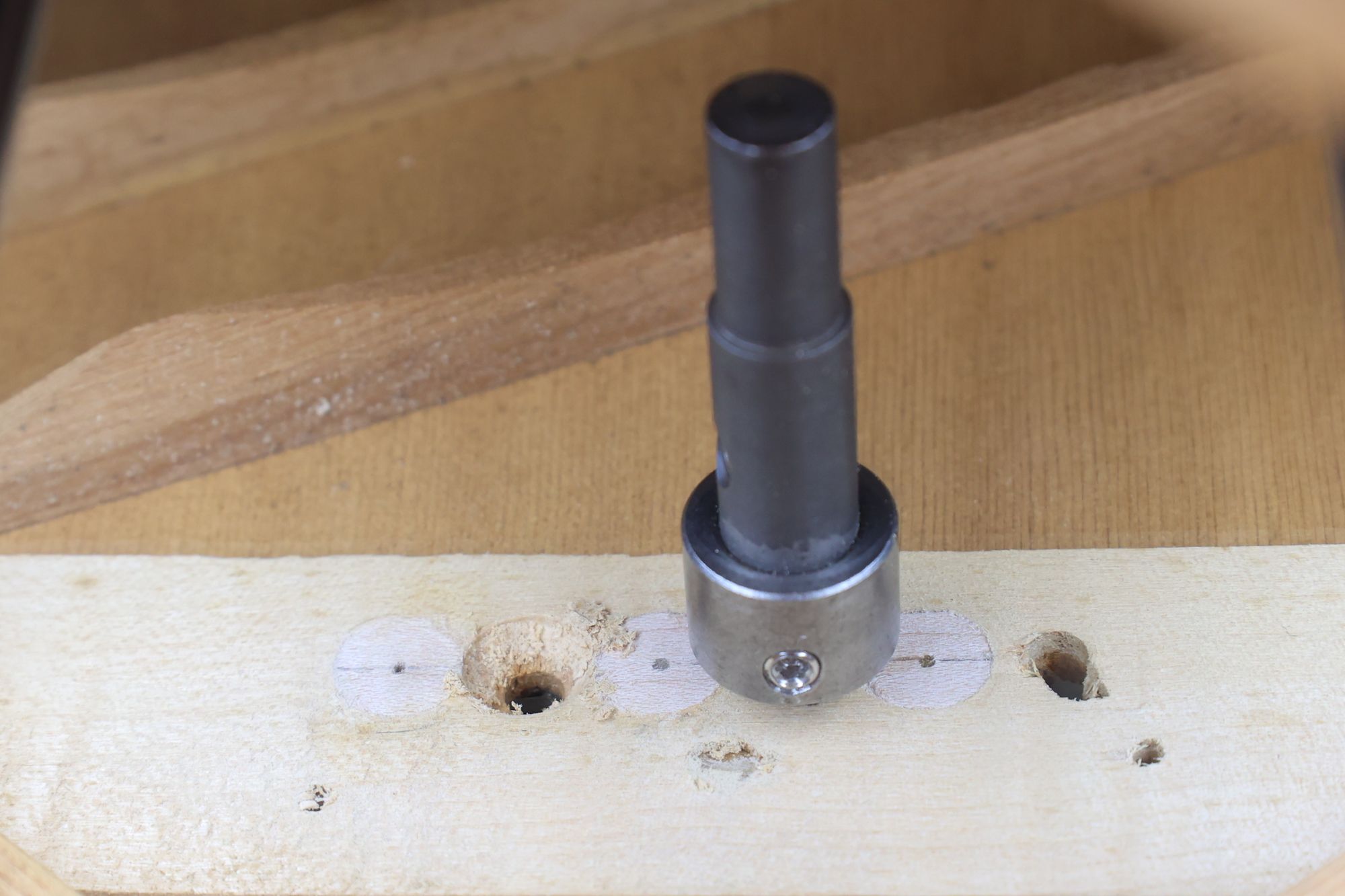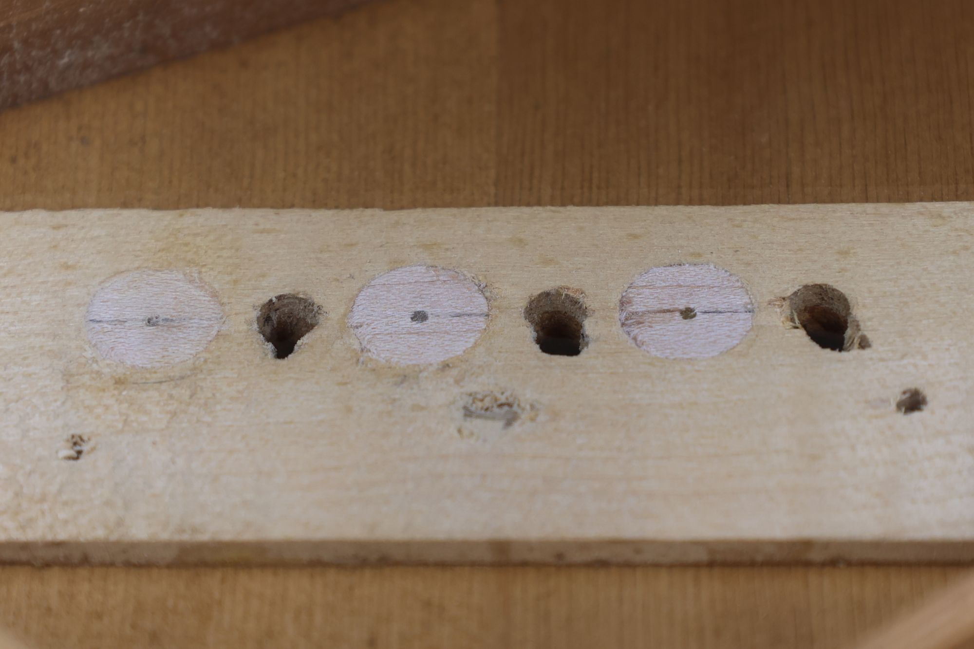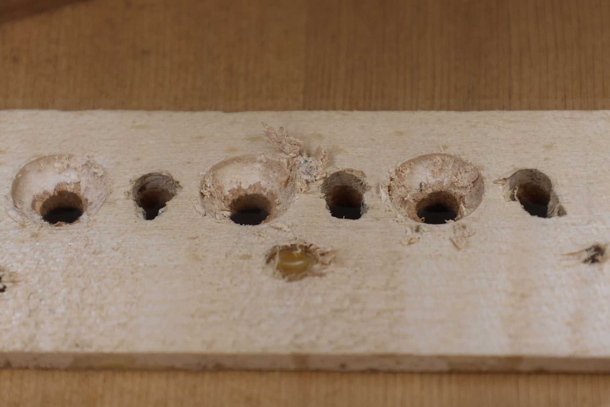- 5.小穴があいたプラグです。まだ材に固定されています。