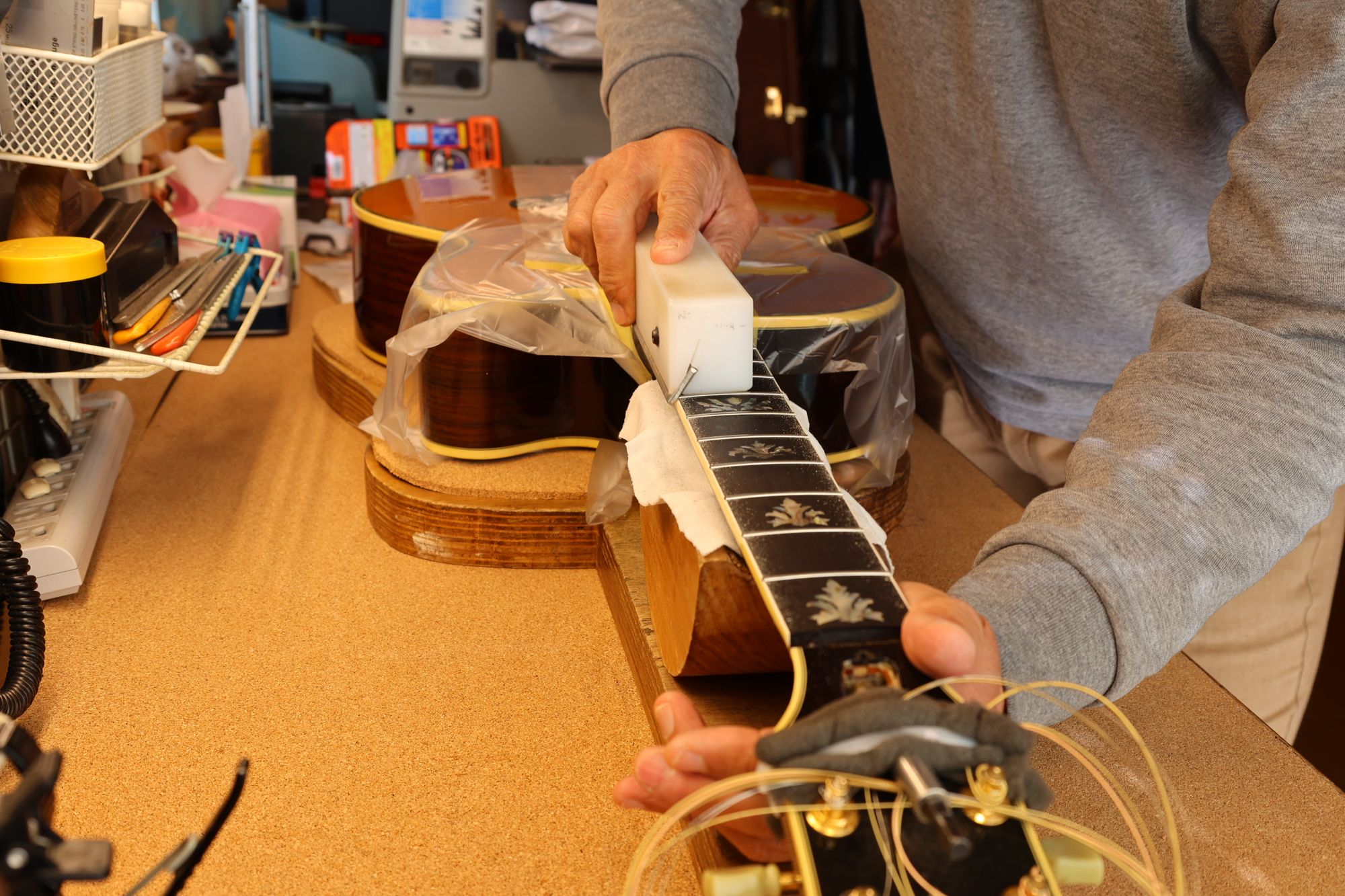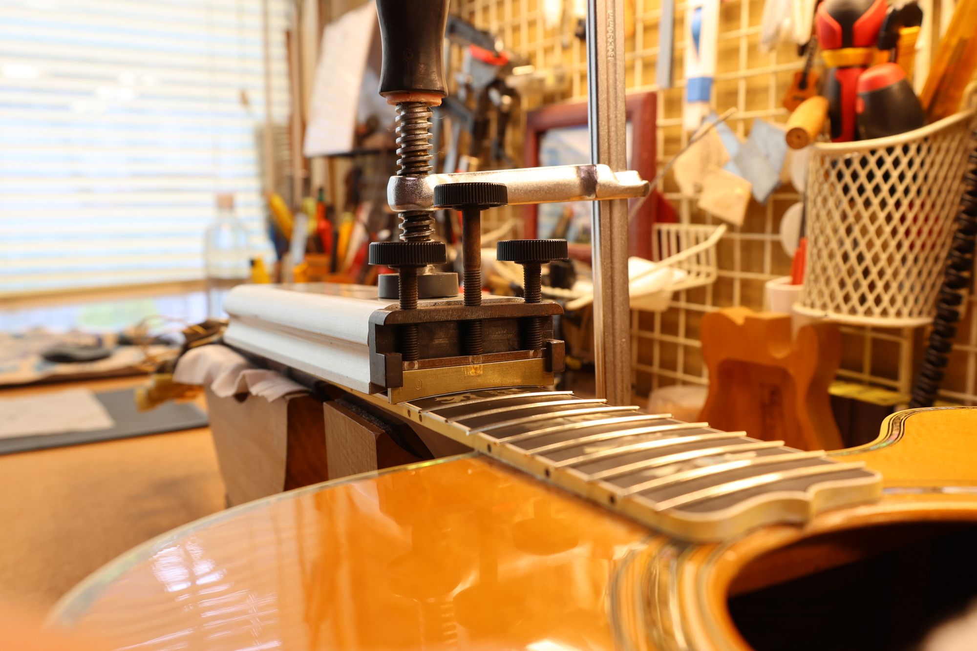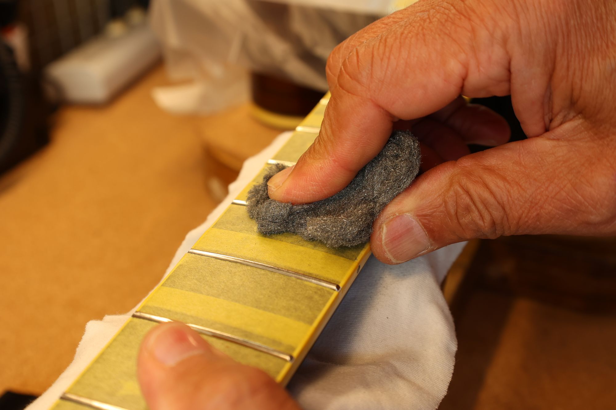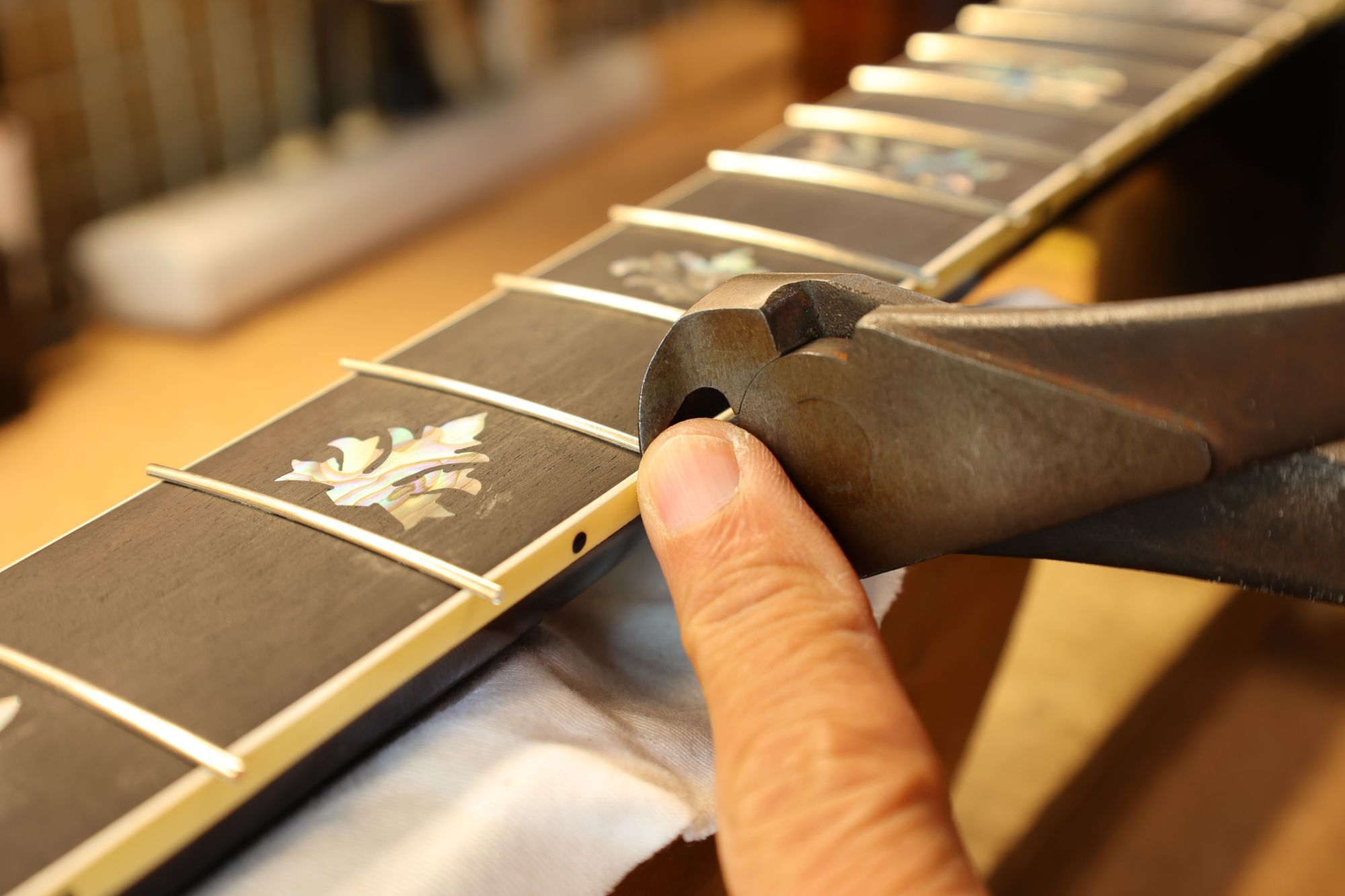 - 31.専用のヤスリを使ってフレット端を整形します。
