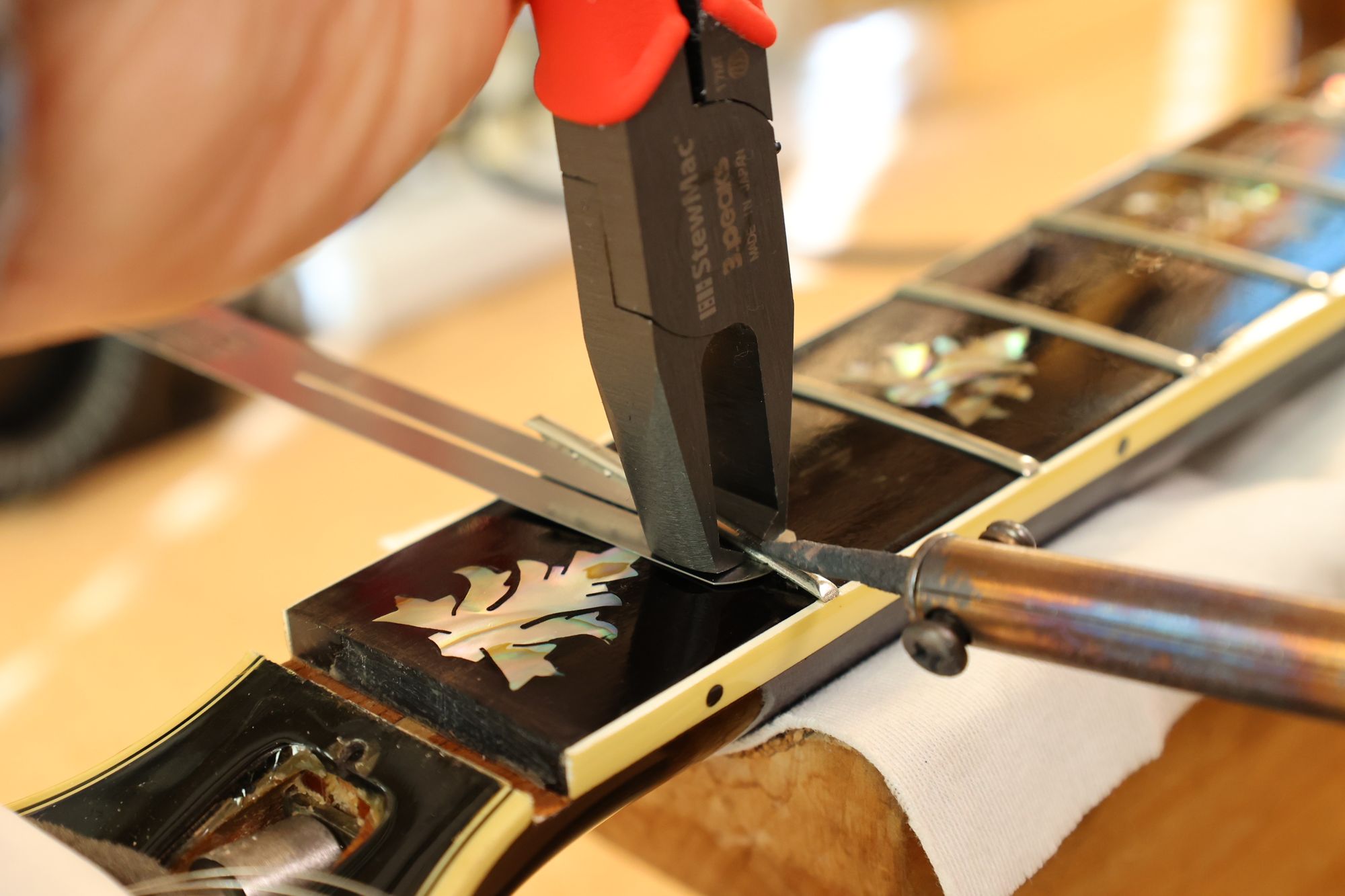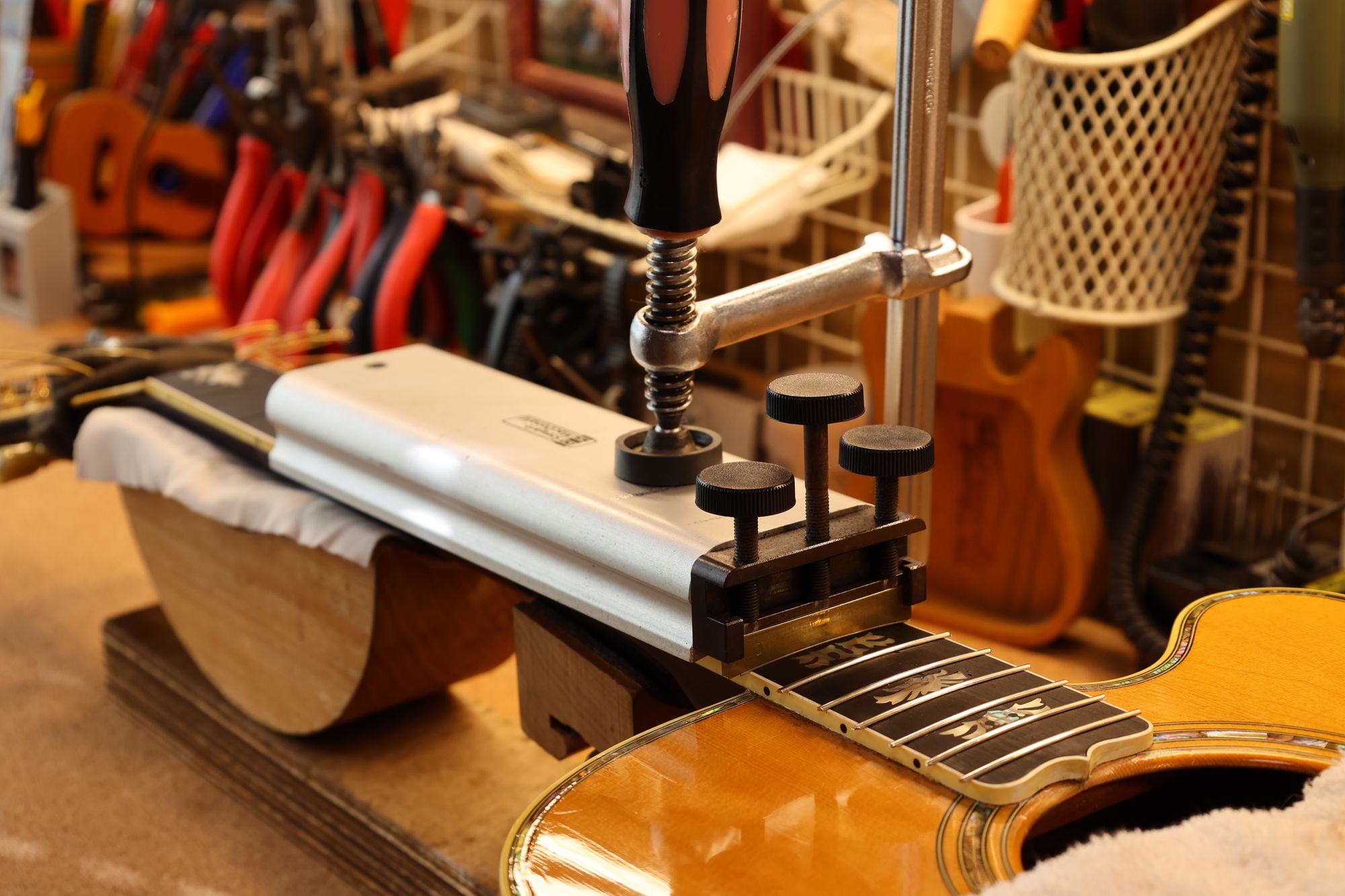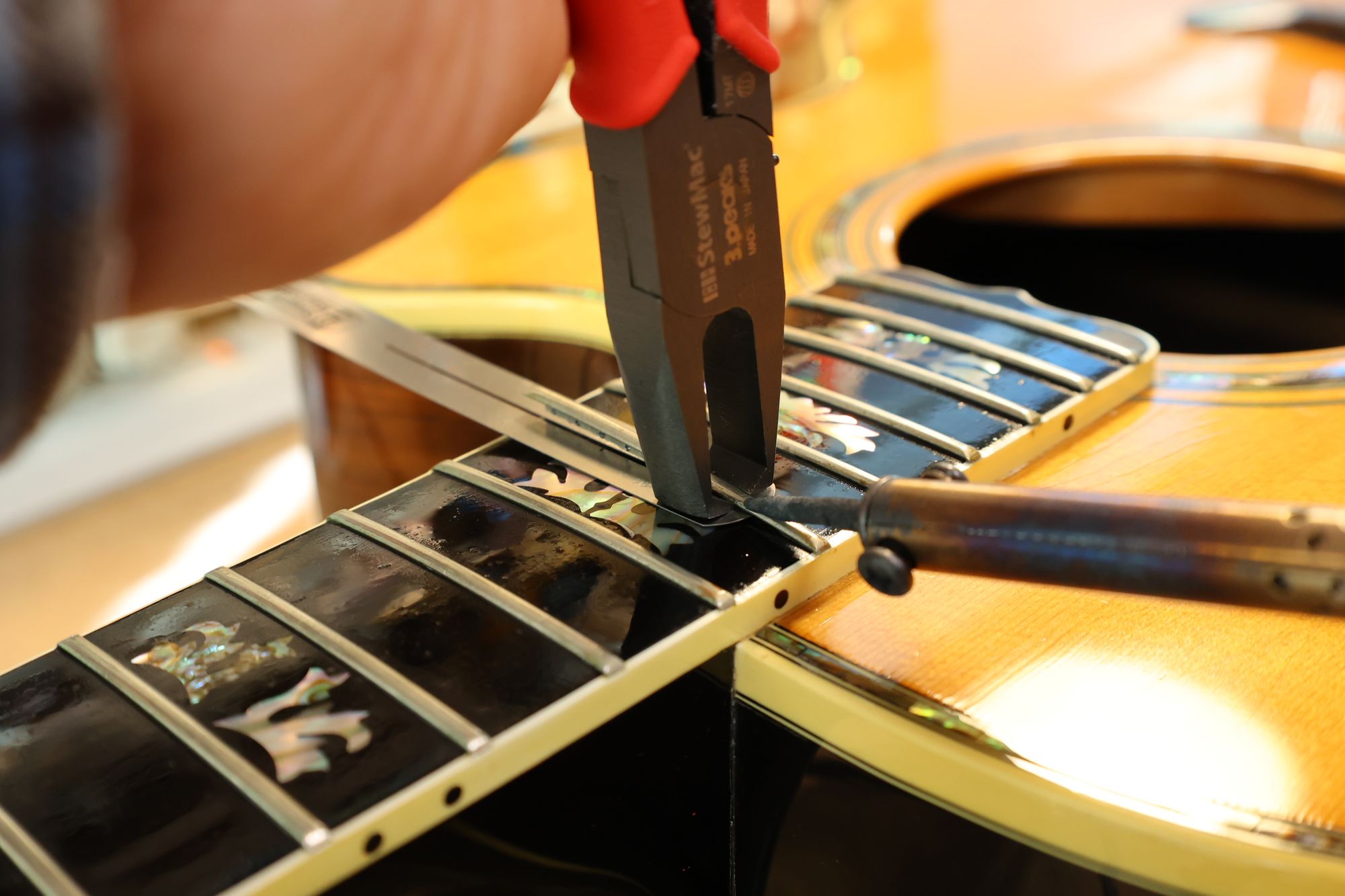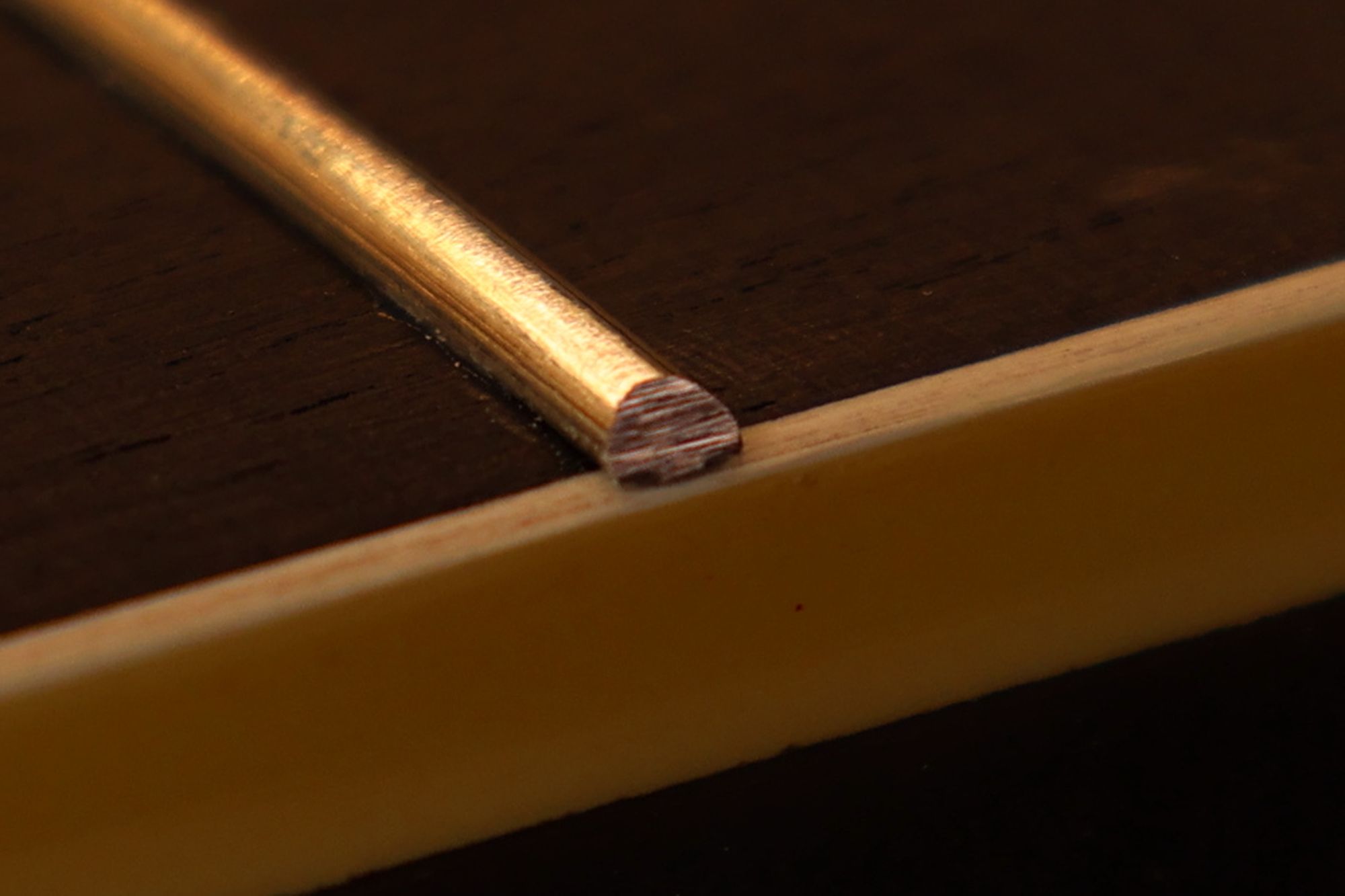 - 31.専用のヤスリを使ってフレット端を整形します。