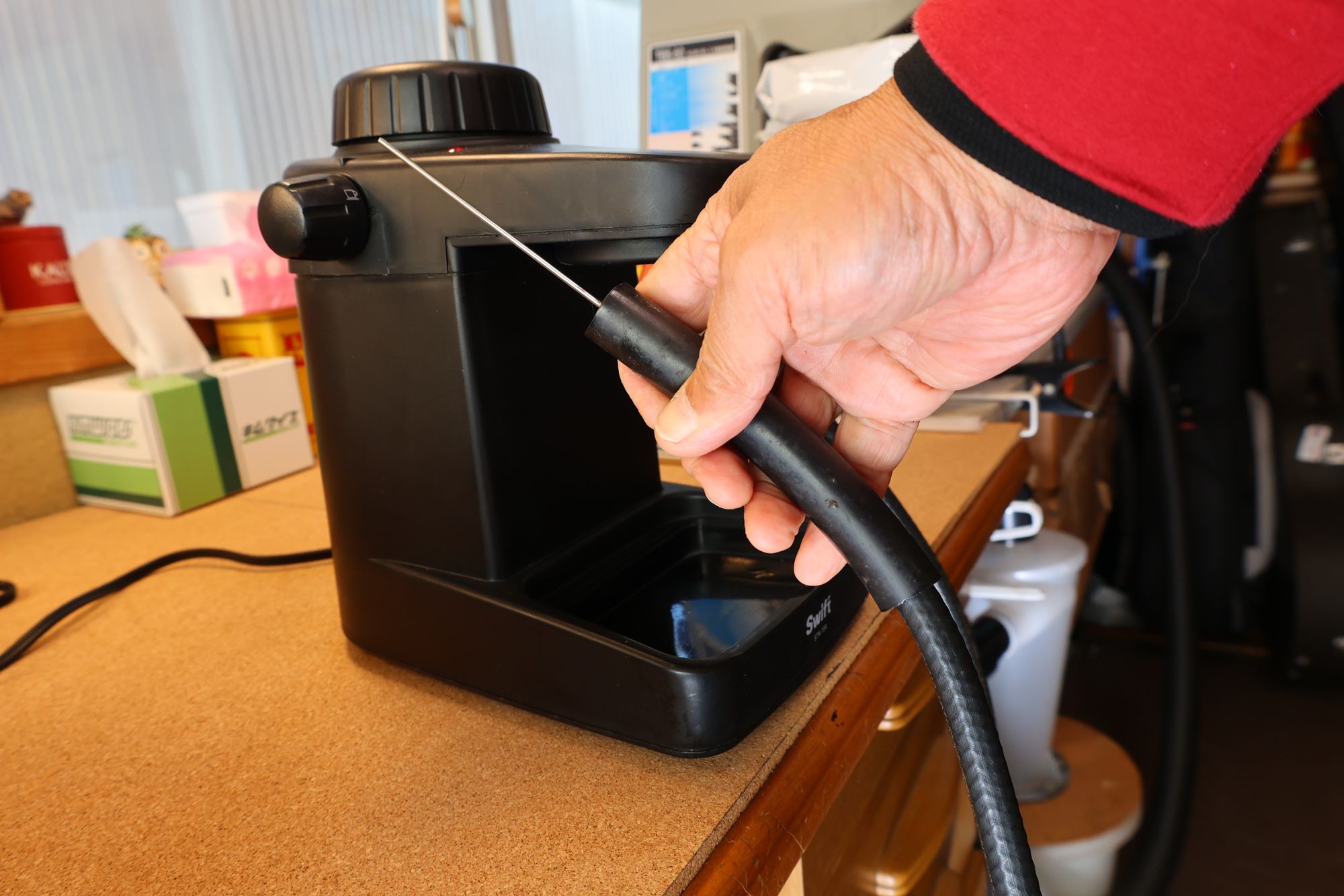 - 11.蒸気発生用のエスプレッソメーカーにホースと蒸気注入ジグを取り付けます。