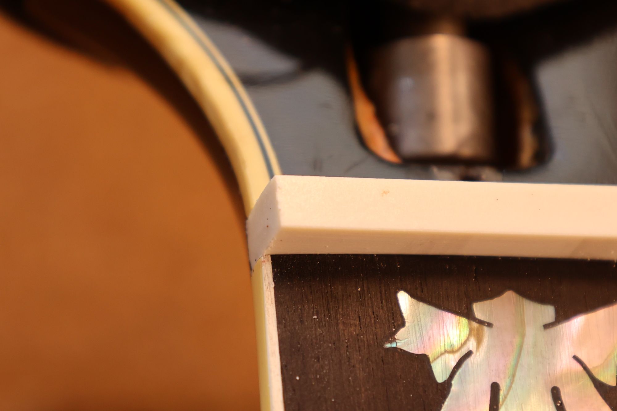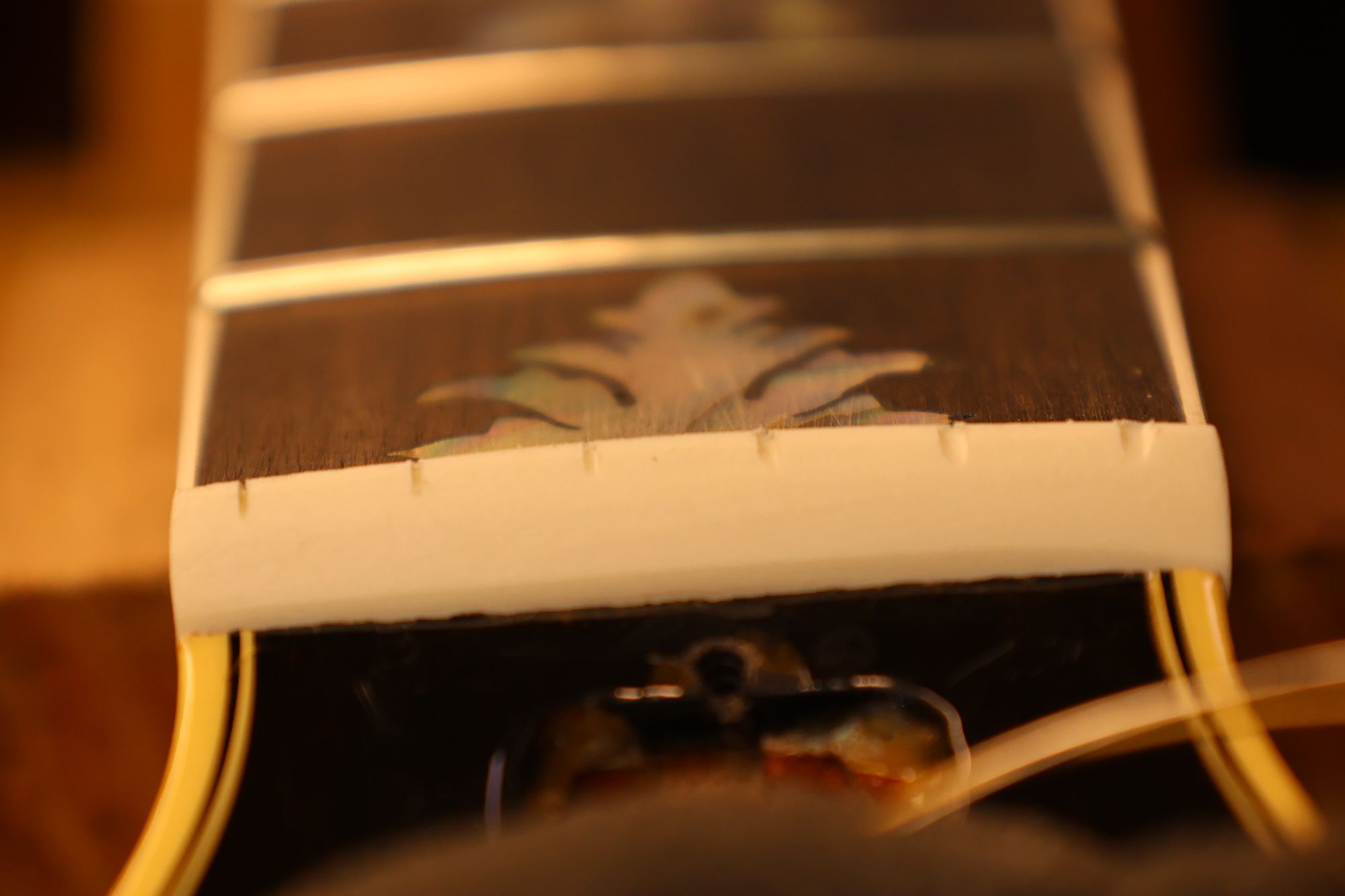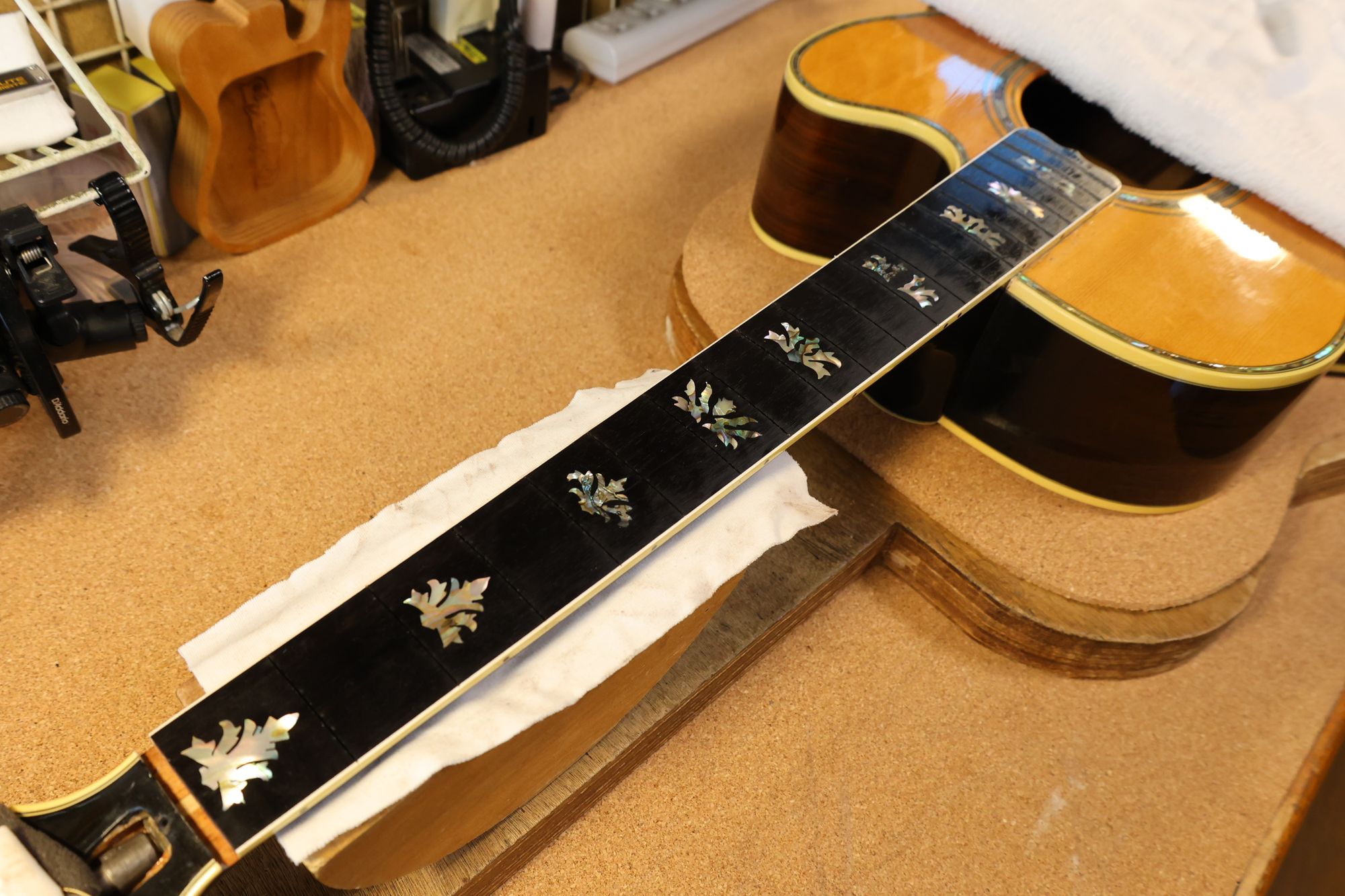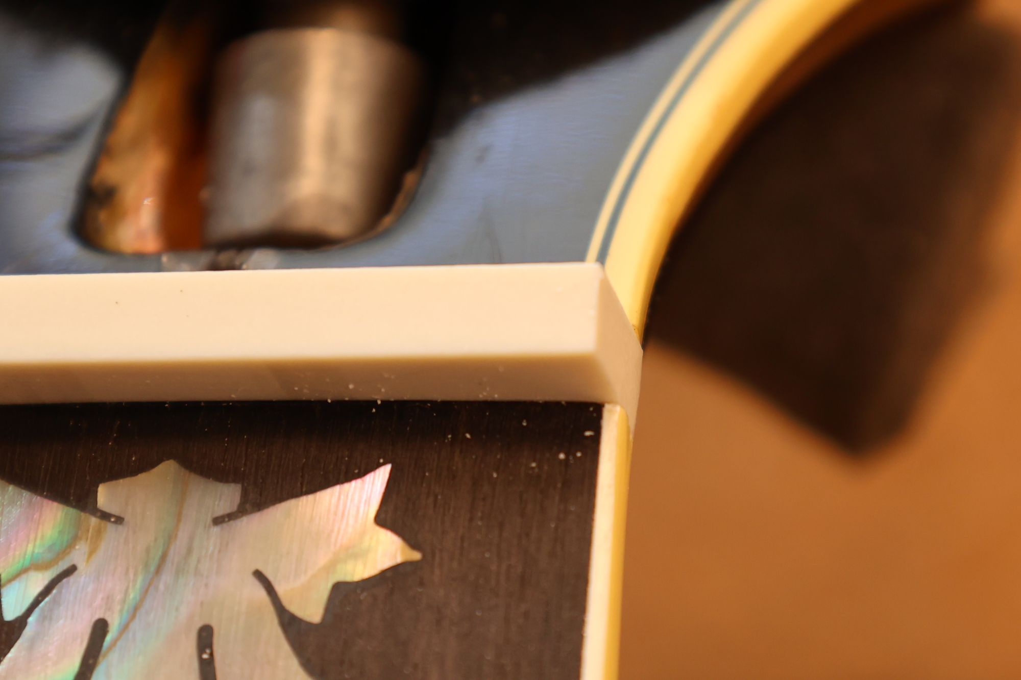 - 12.目視および指で触ってネック、フィンガーボードと段差のないことを確認しておきます。
