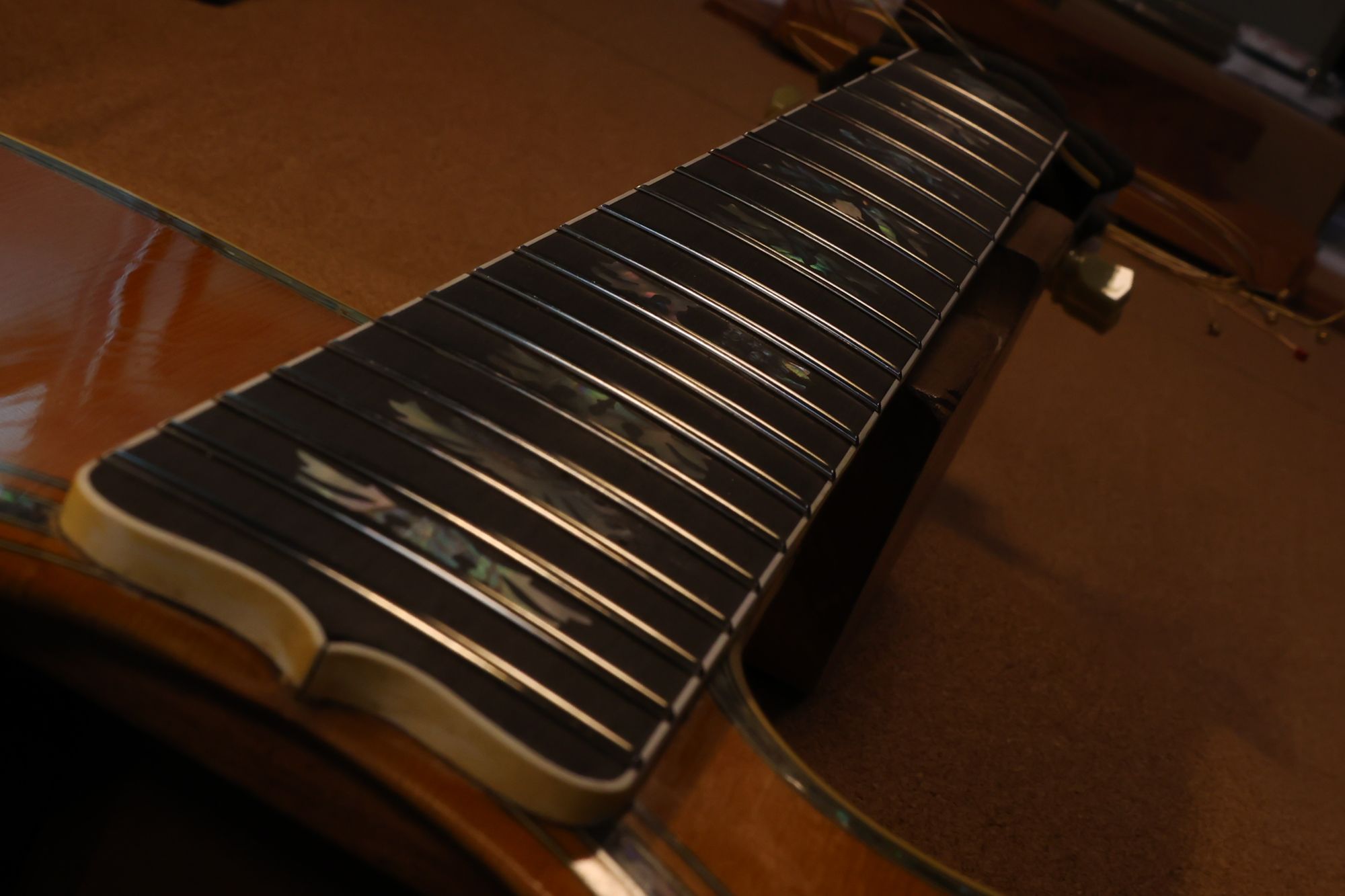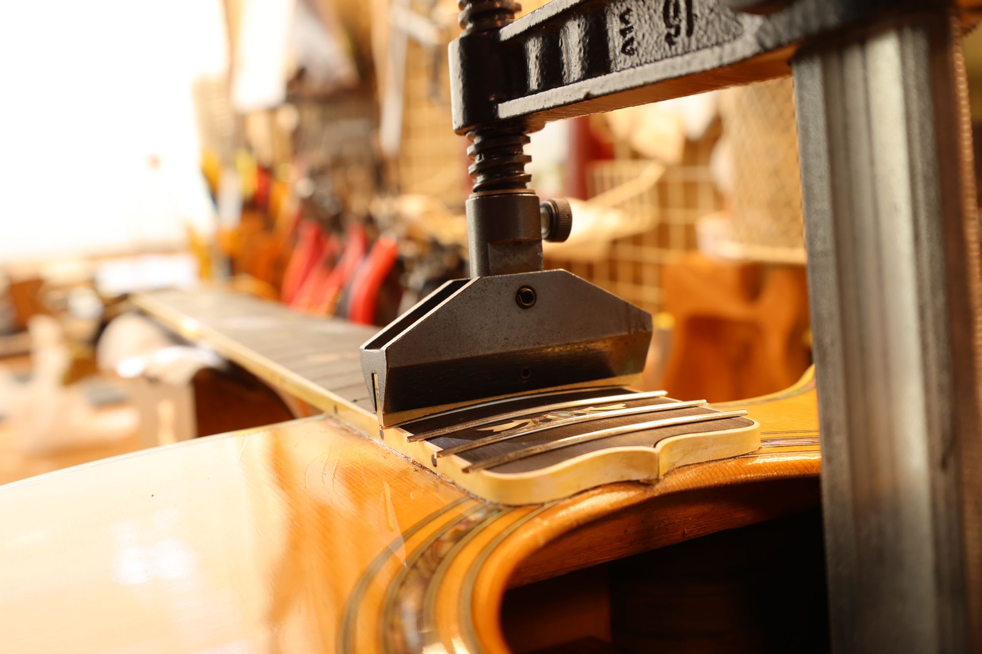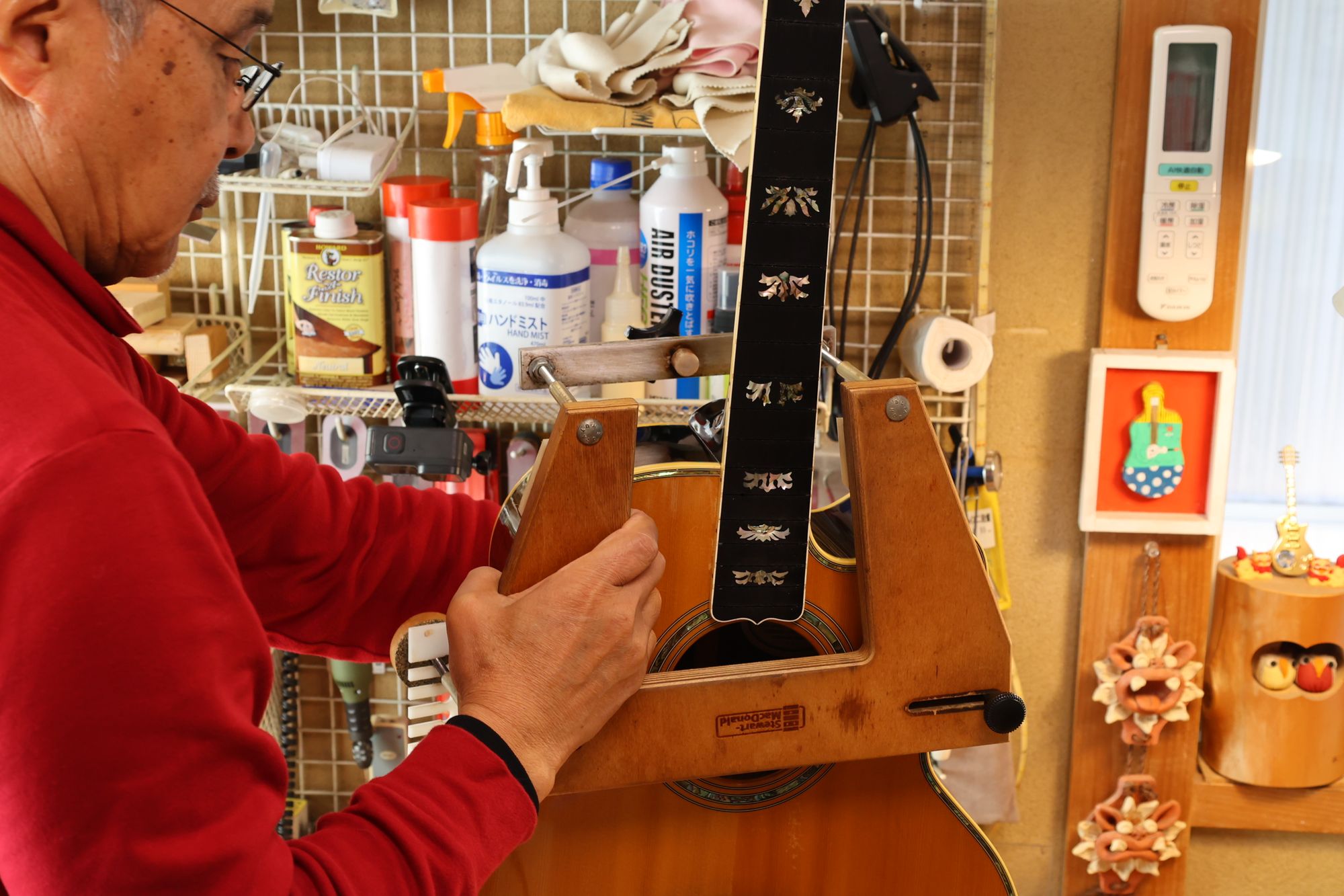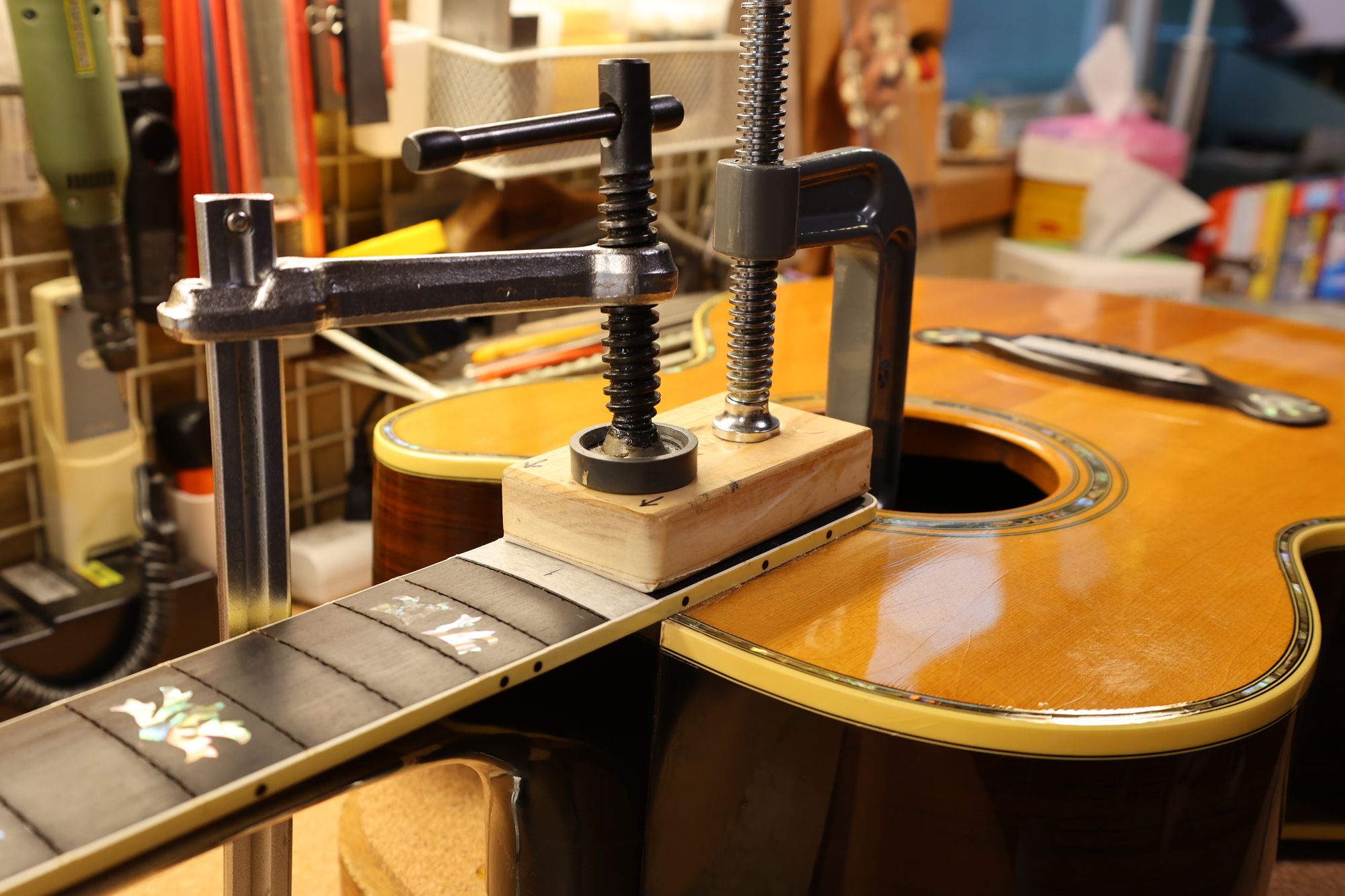 - 12.目視および指で触ってネック、フィンガーボードと段差のないことを確認しておきます。