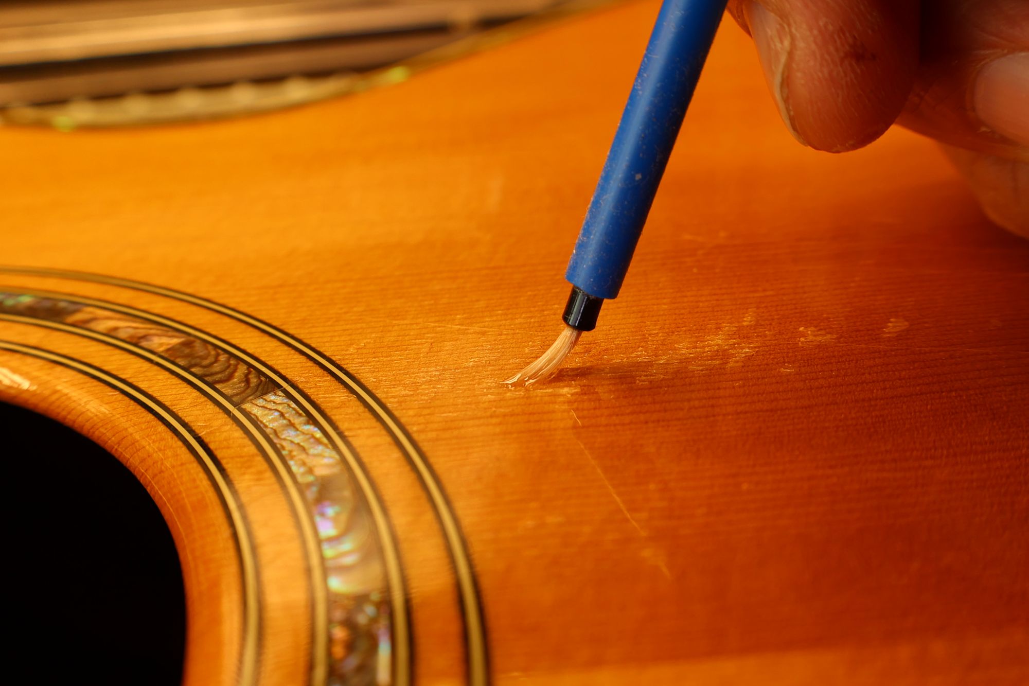 - 2.1ピックによるスクラッチ傷が見られますのでタッチアップを行いましょう。