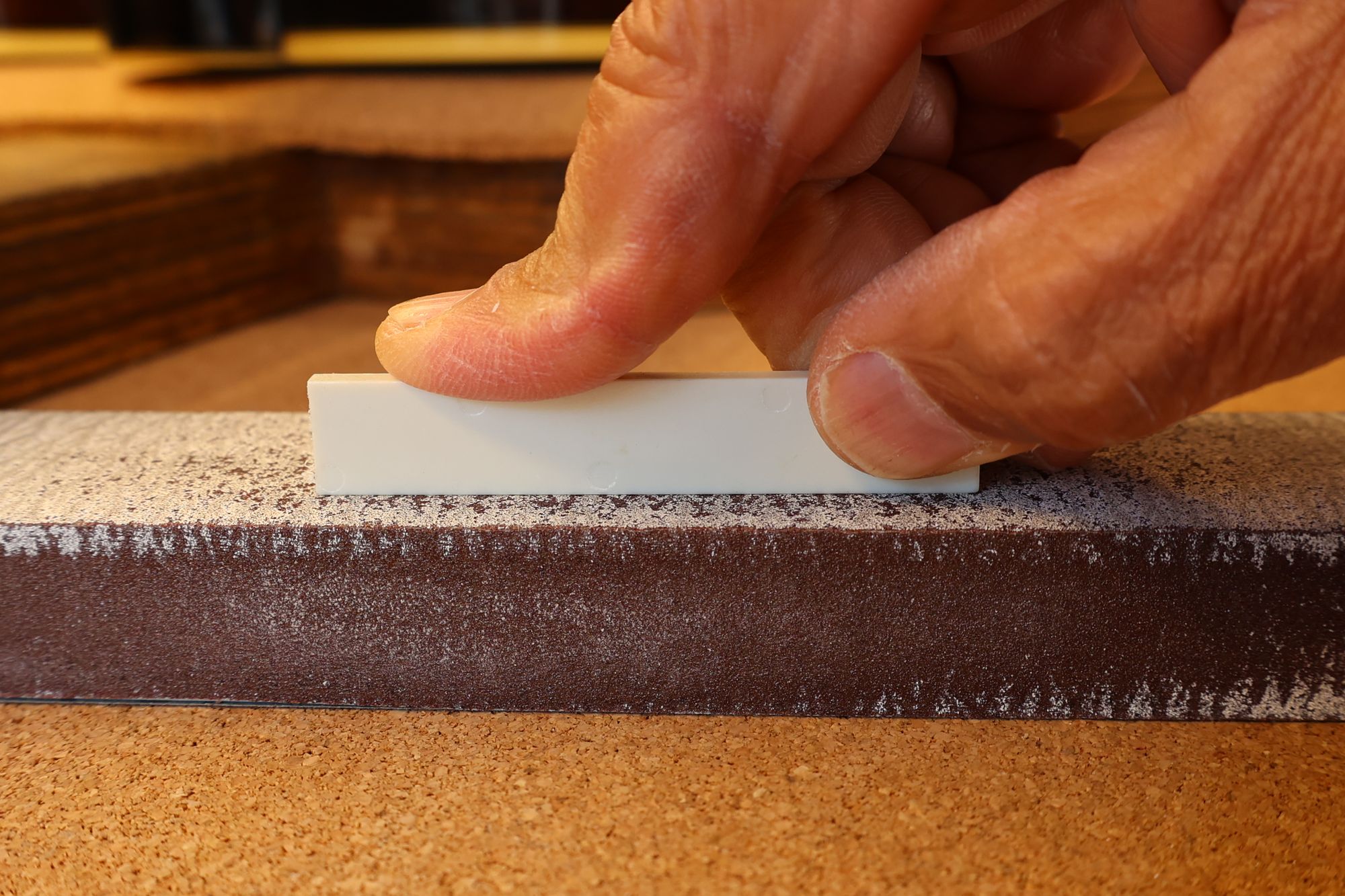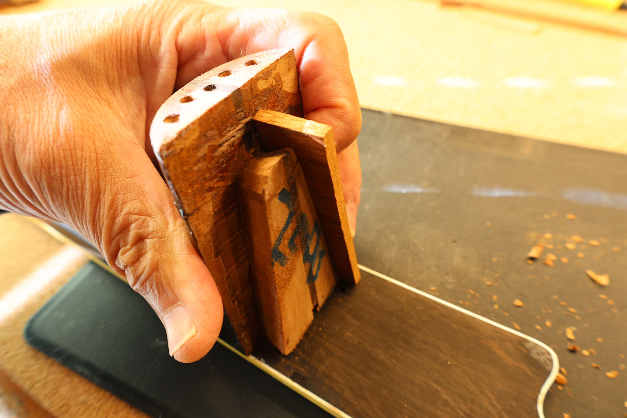- 19.弦溝を専用のヤスリで彫り込んでいきます。
