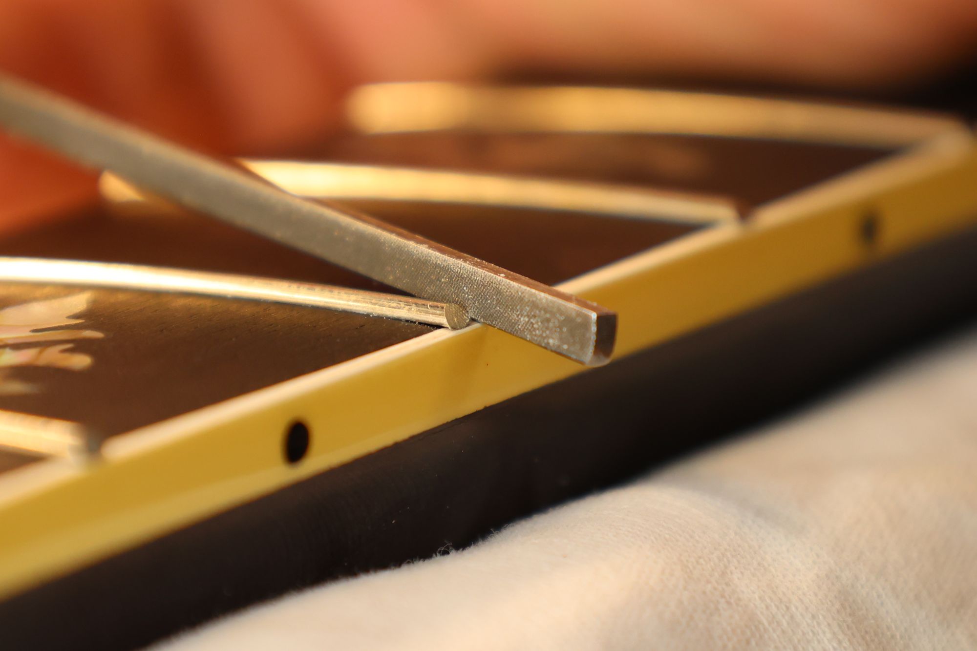 - 34.さらにフレット・エンド・ドレッシング・ファイルでバリを取っていきます。