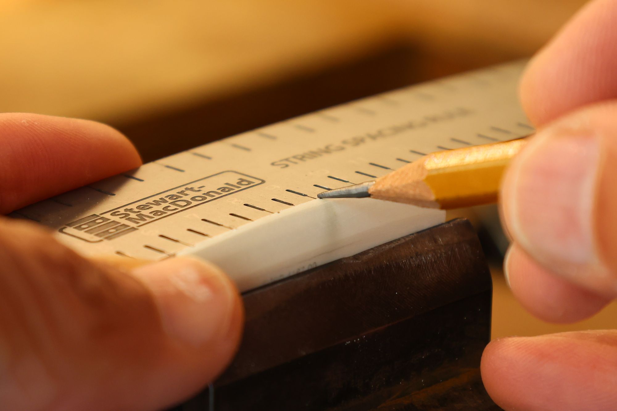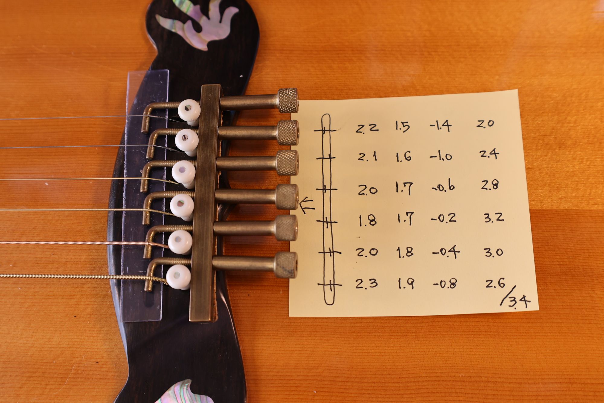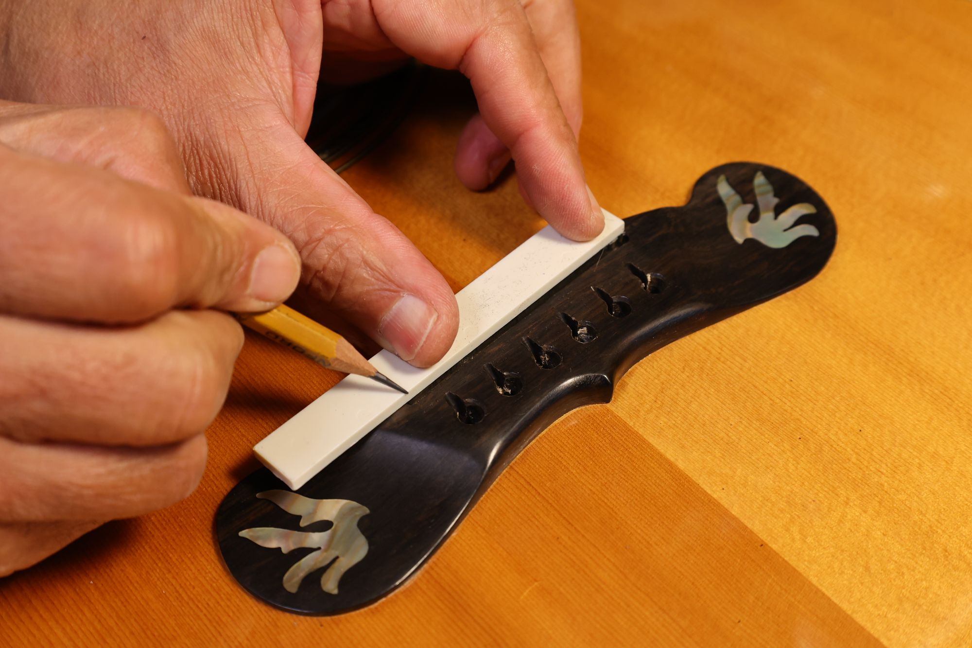 - 17.目標の弦溝位置を読みとります。(1弦と6弦の位置で他の弦の位置が決まります)