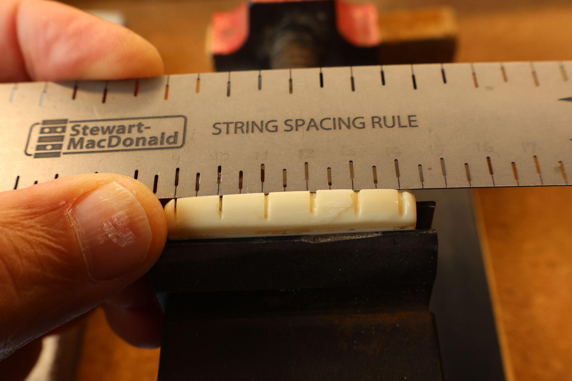 - 25.他の弦も同じ要領で調整しました。弦高調整後のナットです。