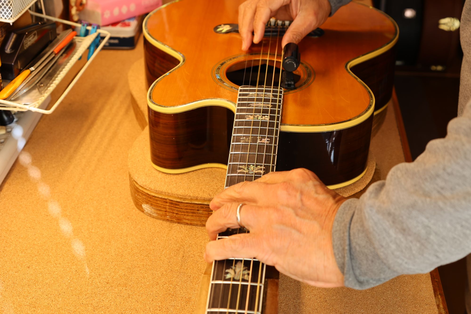 音色はリペア前と比べ格段に音抜けが向上し、特に高音域が綺麗になりカポ使用でも音抜けが良くなりました。