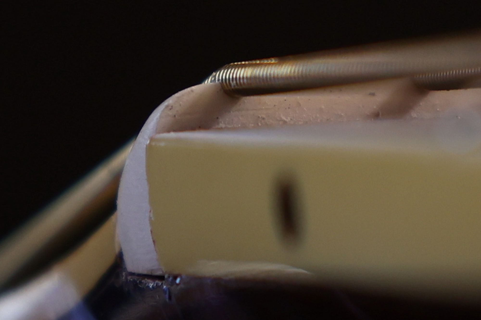 - 5.クリーニング完了したナット溝です。ナットが溝と直接触れることによってギターの音色の改善が期待できます。