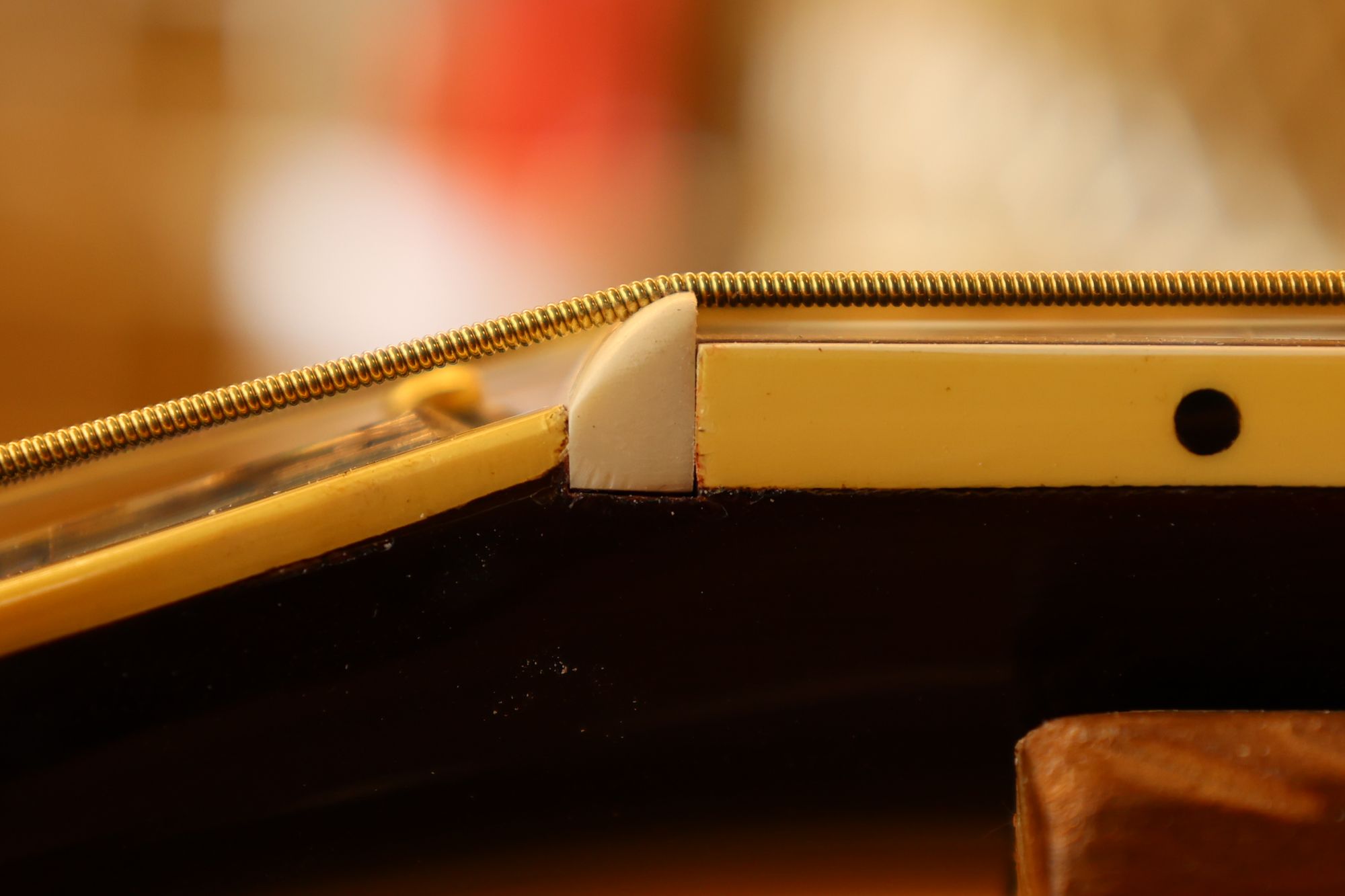 ボディトップのピック打痕は綺麗に修復され、フレットもピカピカでエッジ仕上げも良い感触です。