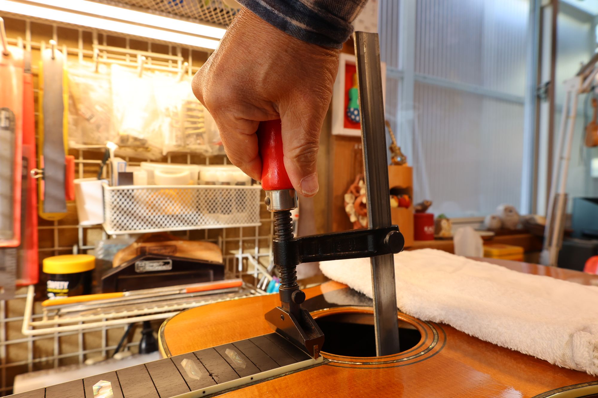 - 15.ジグをサウンドホールから入れていきます。