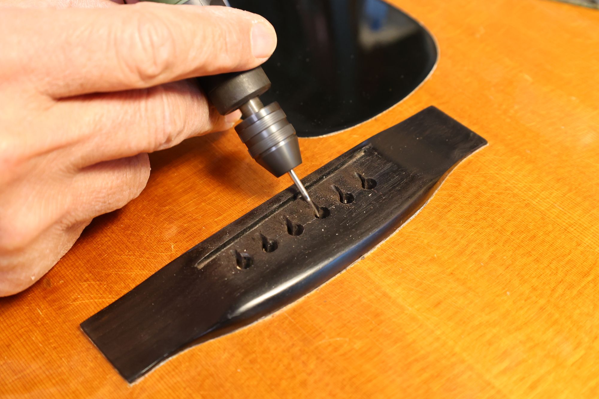 - ブリッジピン穴を空けている様子です