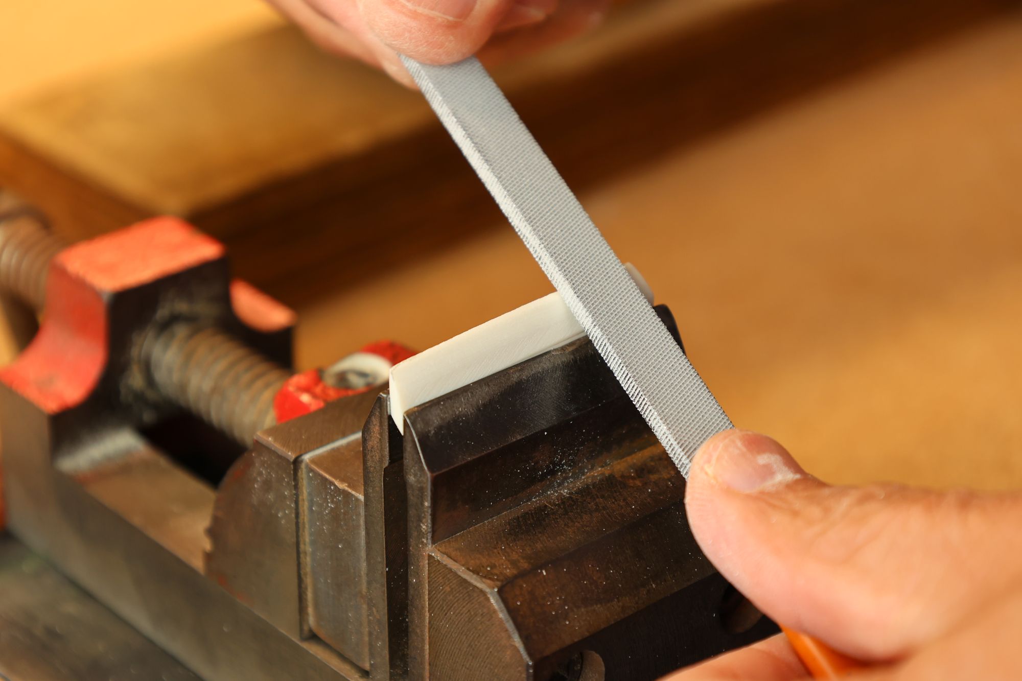 - 7.フラットファイルを使ってナットの平面を削り出します。