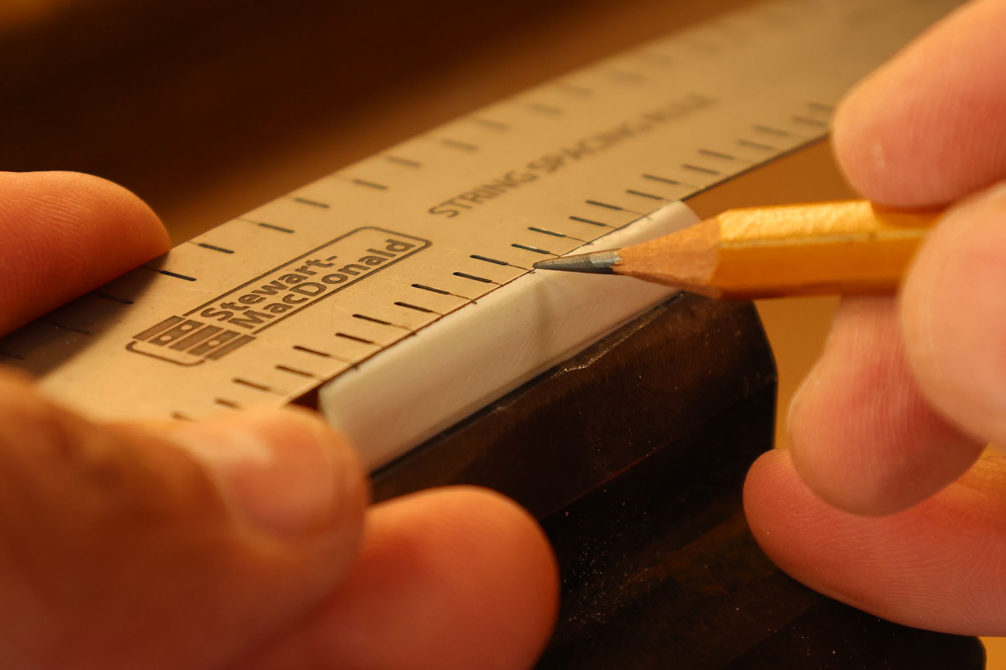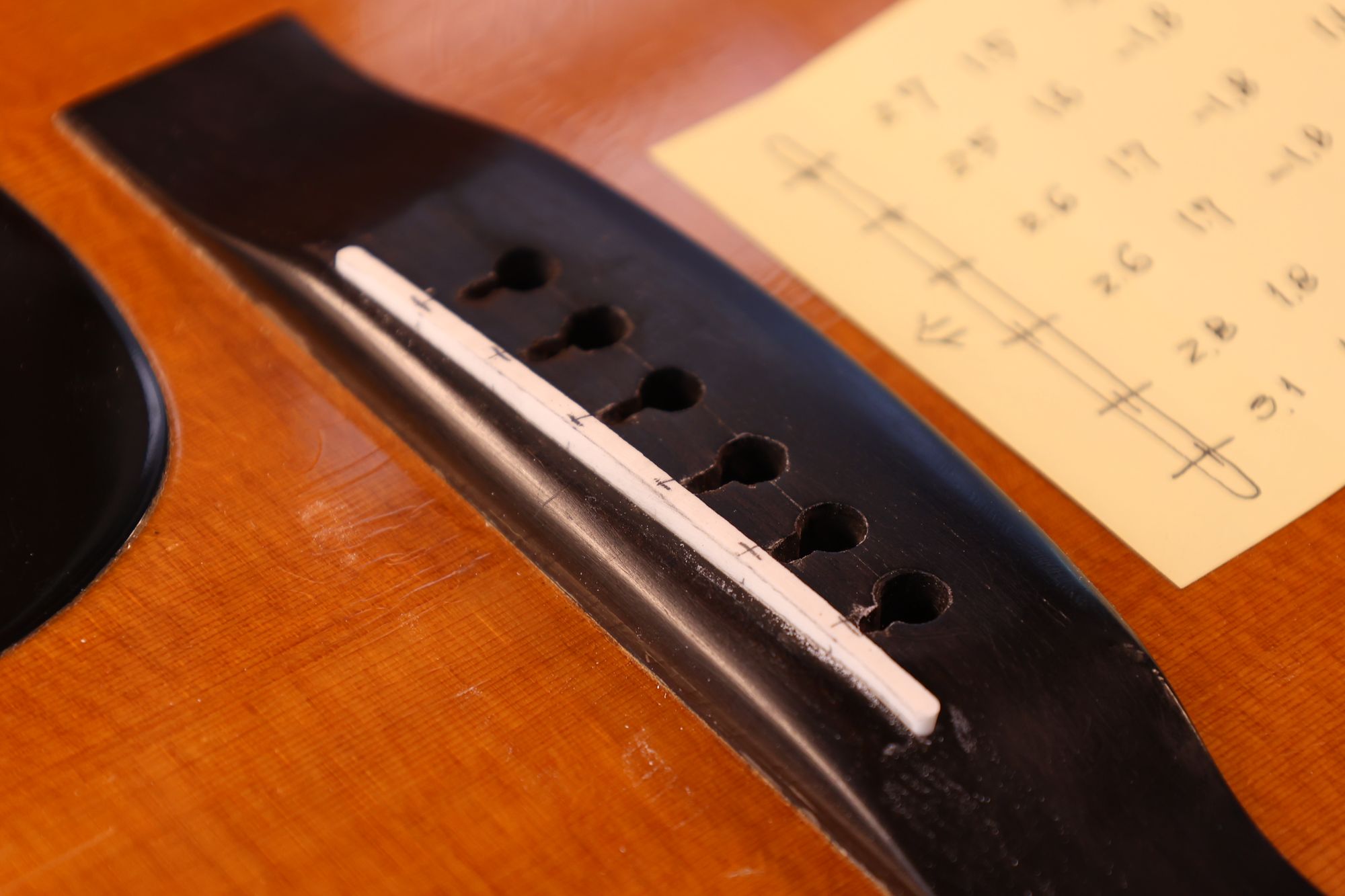 - 18.弦溝位置を新しいナットに書き込みます。