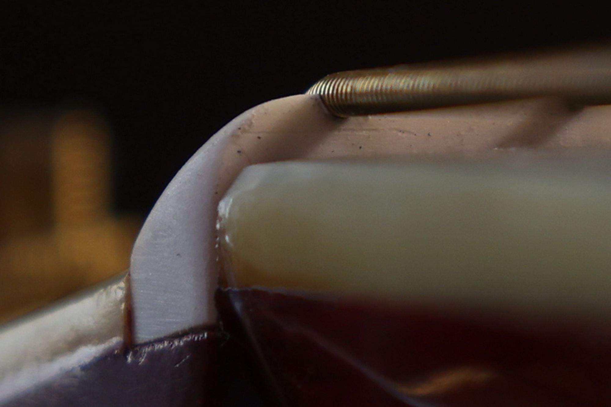 - 4.ナット溝のクリーニングを行います。ナット溝に残った不要物を削り取っていきます。