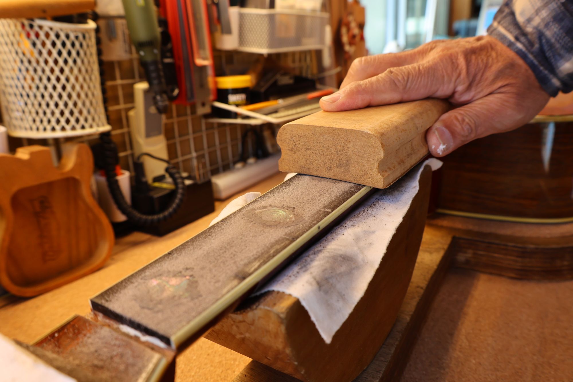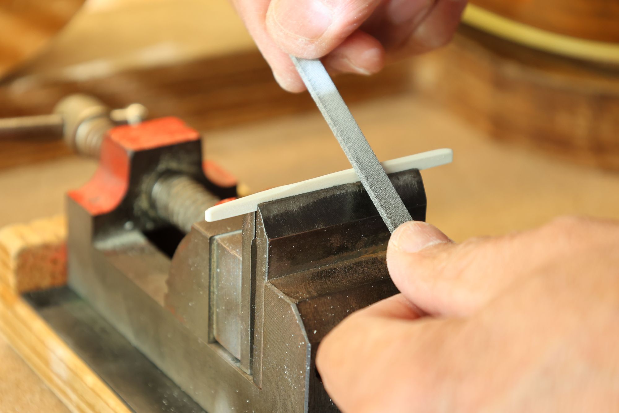 - 19.弦溝を専用のヤスリで彫り込んでいきます。