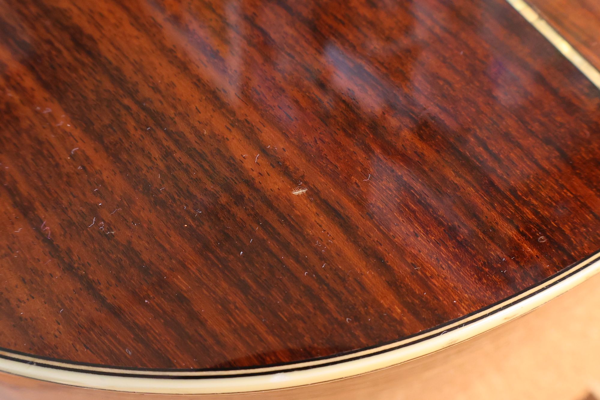 - 2.サウンドホール際にピックのスクラッチ傷跡が見られます。